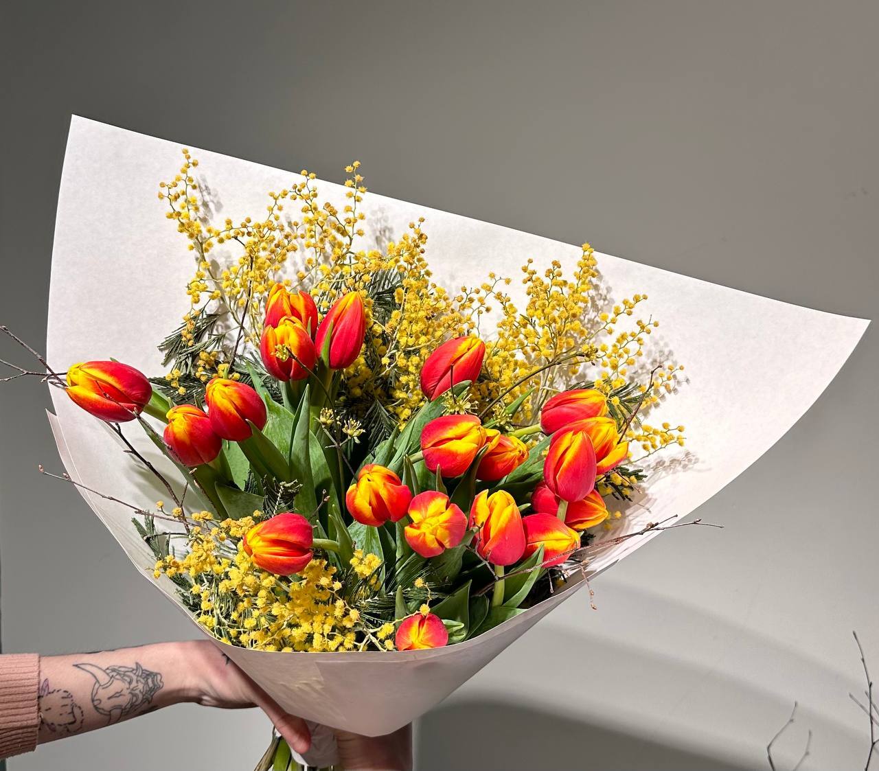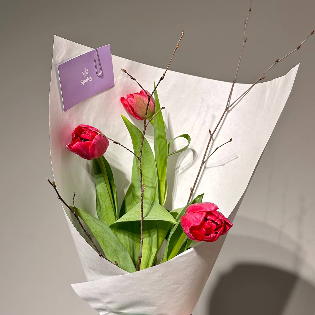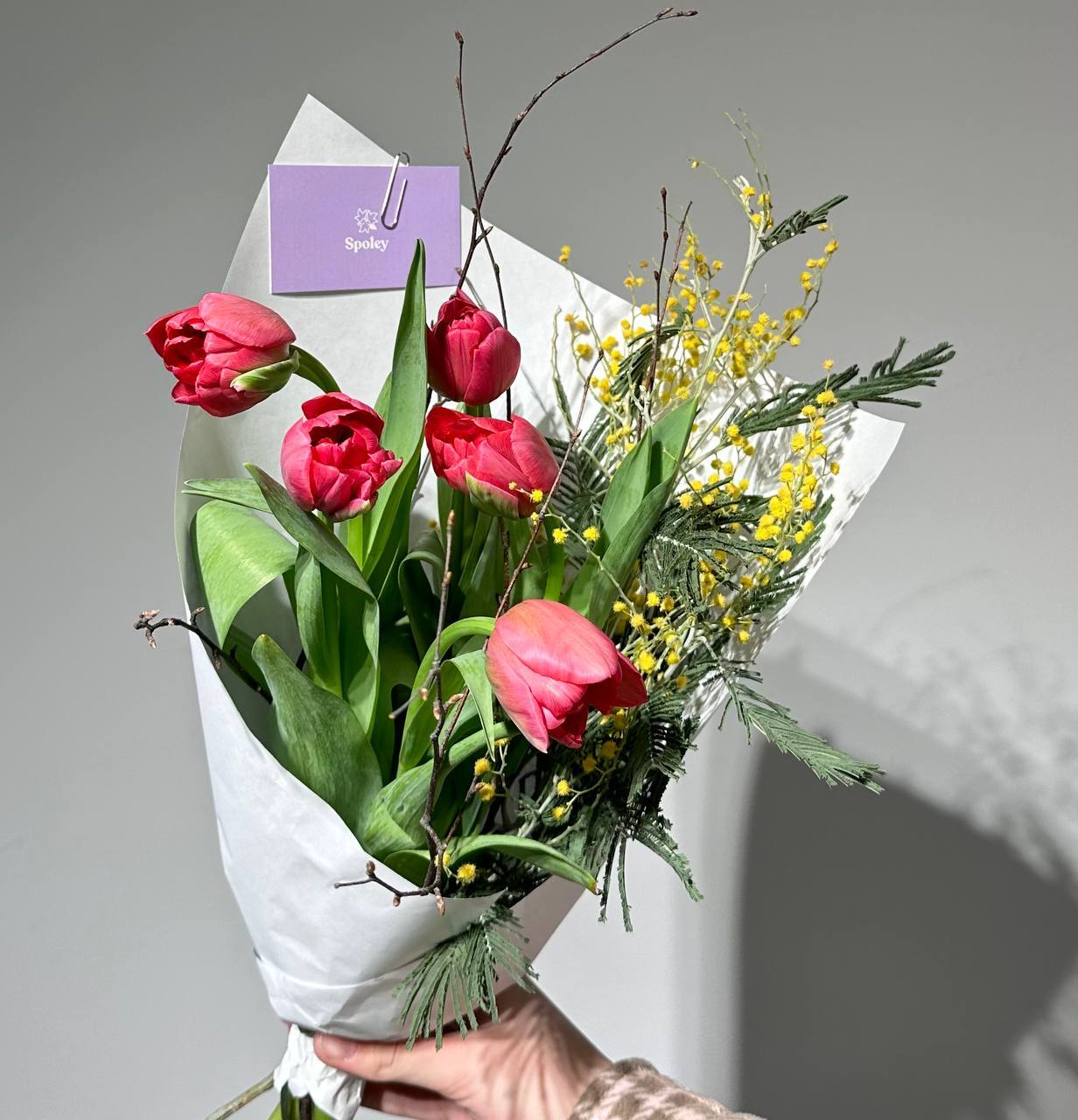 Цвет тюльпанов можно уточнить у наших менеджеров : +7 950 075 6380