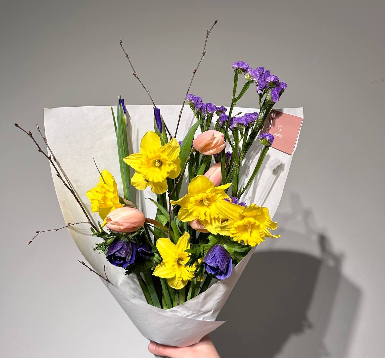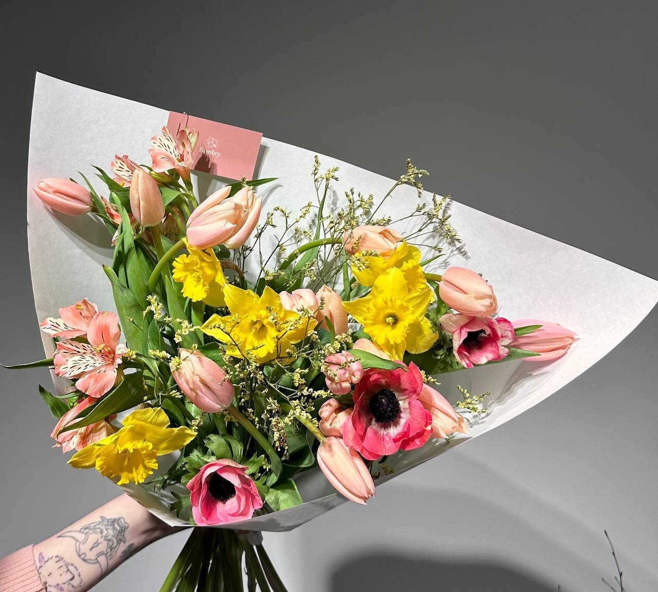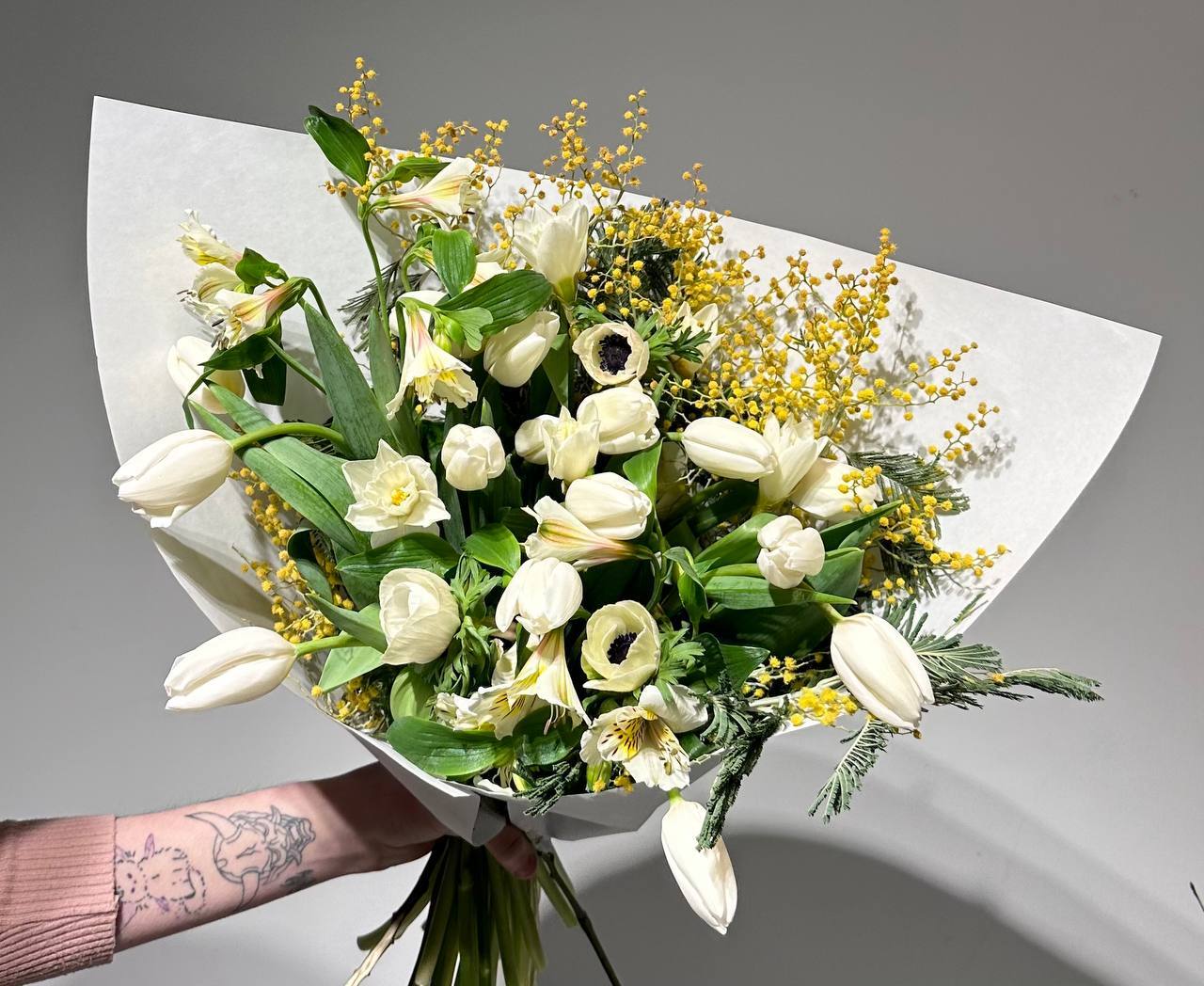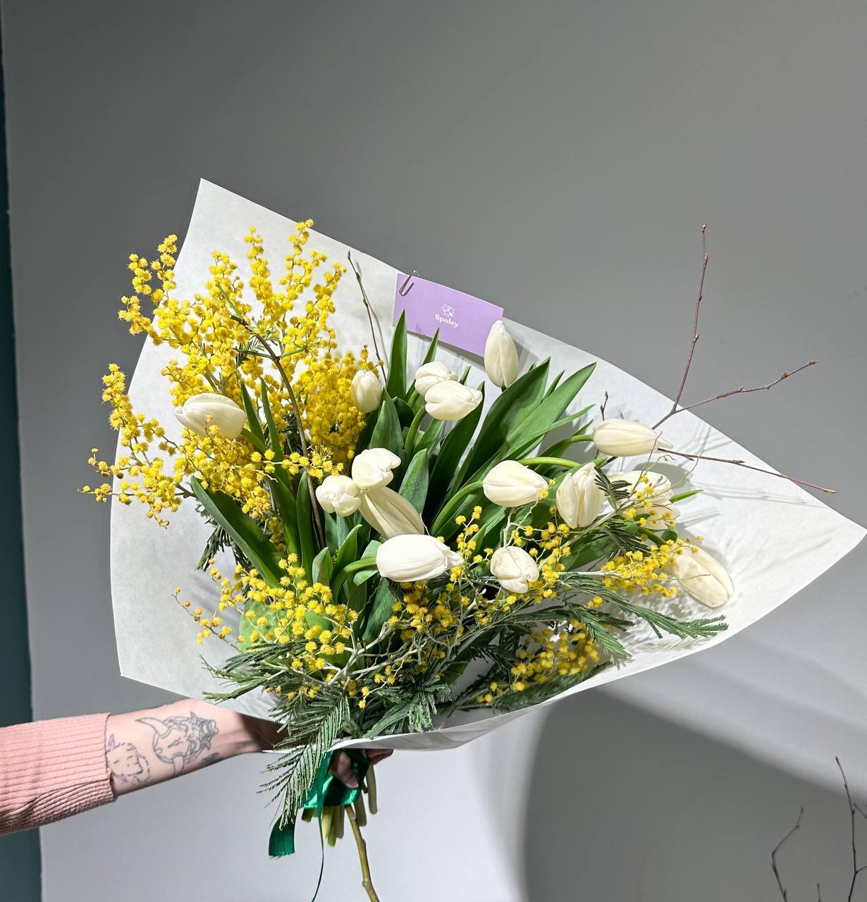 Цвет тюльпанов можно уточнить у наших менеджеров : +7 950 075 6380