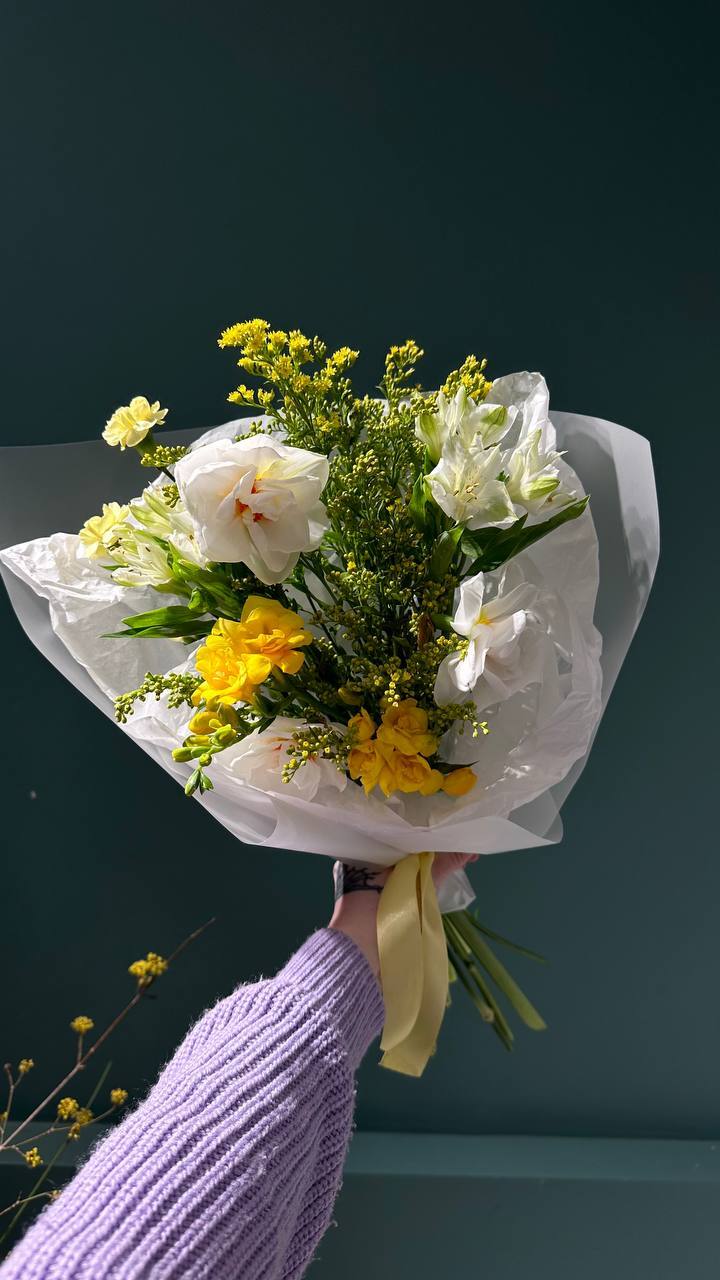 Важно! Каждый наш букет уникален. Мы не повторяем букеты 1 в 1. Выбирая букет вы указываете нам свои пожелания в составе, цветовой гамме и бюджете. Мы соберем для вас букет и пришлем фото для согласования перед отправкой.